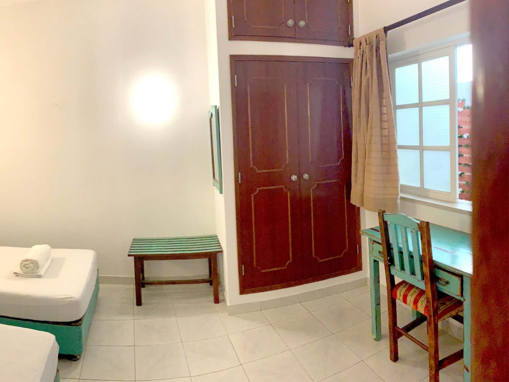 It has a private bathroom, desk, air conditioning and a window to the internal area.