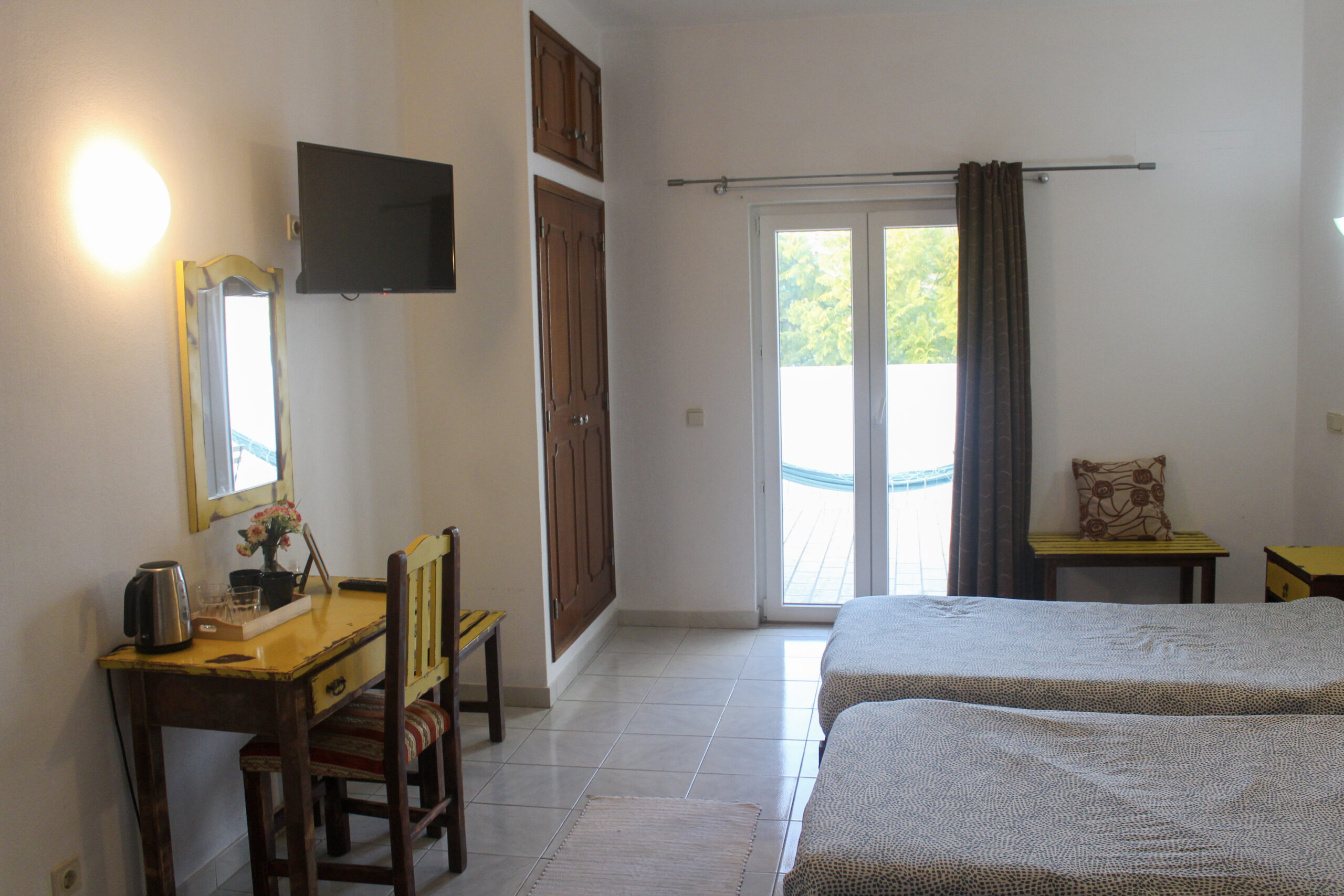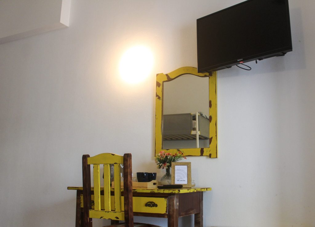 It has a private bathroom, desk, TV, balcony with hammock and a beautiful view of the outdoor area.